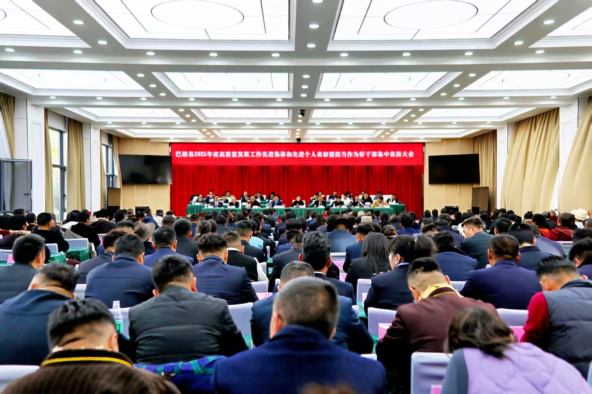 会议宣读了《中共巴塘县委 巴塘县人民政府关于表彰2025年度高质量发展工作先进集体和先进个人的决定》和《中共巴塘县委 巴塘县人民政府关于表扬2025年度担当作为好干部的通报》。通报了获得2025年全州统筹高质量发展和高水平安全先进个人和先进集体,为荣获2025年度全县高质量发展先进集体、先进个人、担当作为好干部代表进行了颁奖。获奖代表作了交流发言。